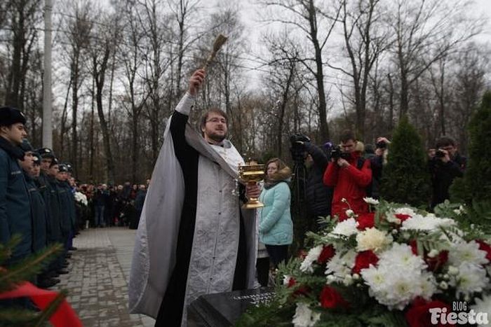 Панихиду совершил иерей Сергий Кубышкин — клирик Троице-Измайловского собора, настоятель храма великомученика Димитрия Солунского, который планируется построить в Красносельском районе Санкт-Петербурга. В этом храме будет увековечена память погибших.